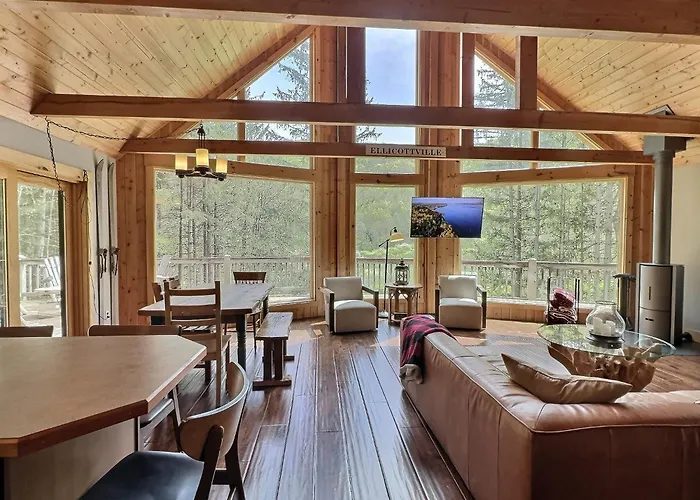 Die Unterkunft in Ellicottville bietet Gästen Selbstversorgereinrichtungen wie eine komplette Küche sowie ein Essbereich. Es gibt auch eine Mikrowelle, eine Kaffee-/Teemaschine und einen Kühlschrank in der Küche. Die Gegend um die Hot Tub & Fire Pit~The Pines Chalet herum eignet sich zum Skifahren und Radfahren.